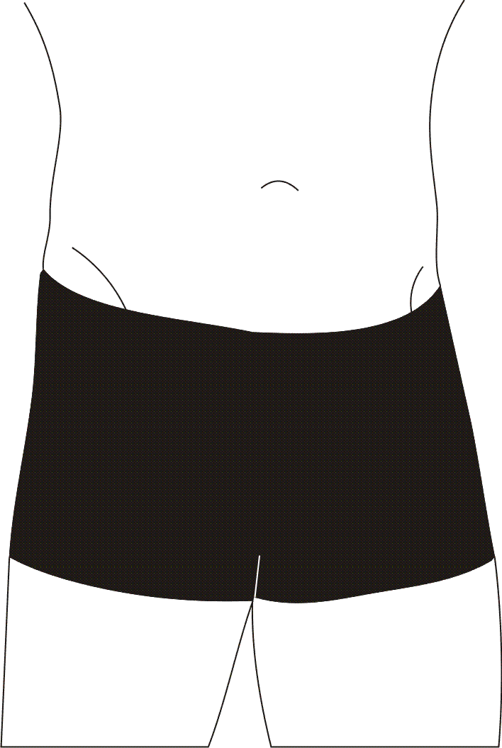 DESCRIPTION: Features inside front lining, 4" side, & draw string elastic waist band